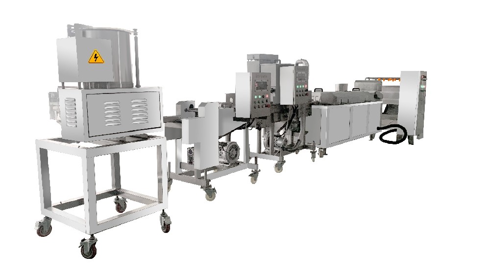 薯饼加工流水线是一个复杂而高效的食品加工系统,涉及从原料准备到成品包装的多个环节,通常包括原料加工、成型、上浆、油炸、冷却、调味、包装等环节。